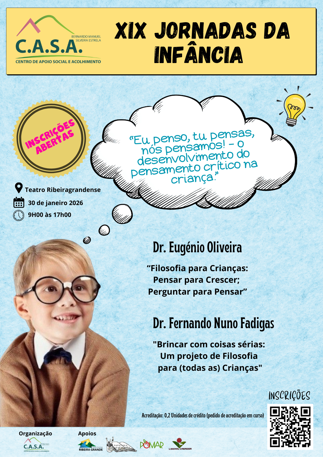 Sob a temática «Eu penso, tu pensas, nós pensamos – o desenvolvimento do pensamento crítico na Criança», a edição deste ano conta com o Dr. Eugénio Oliveira e com o Professor Nuno Fadigas como palestrantes principais, tendo como moderador o Dr. Fernando Santos.